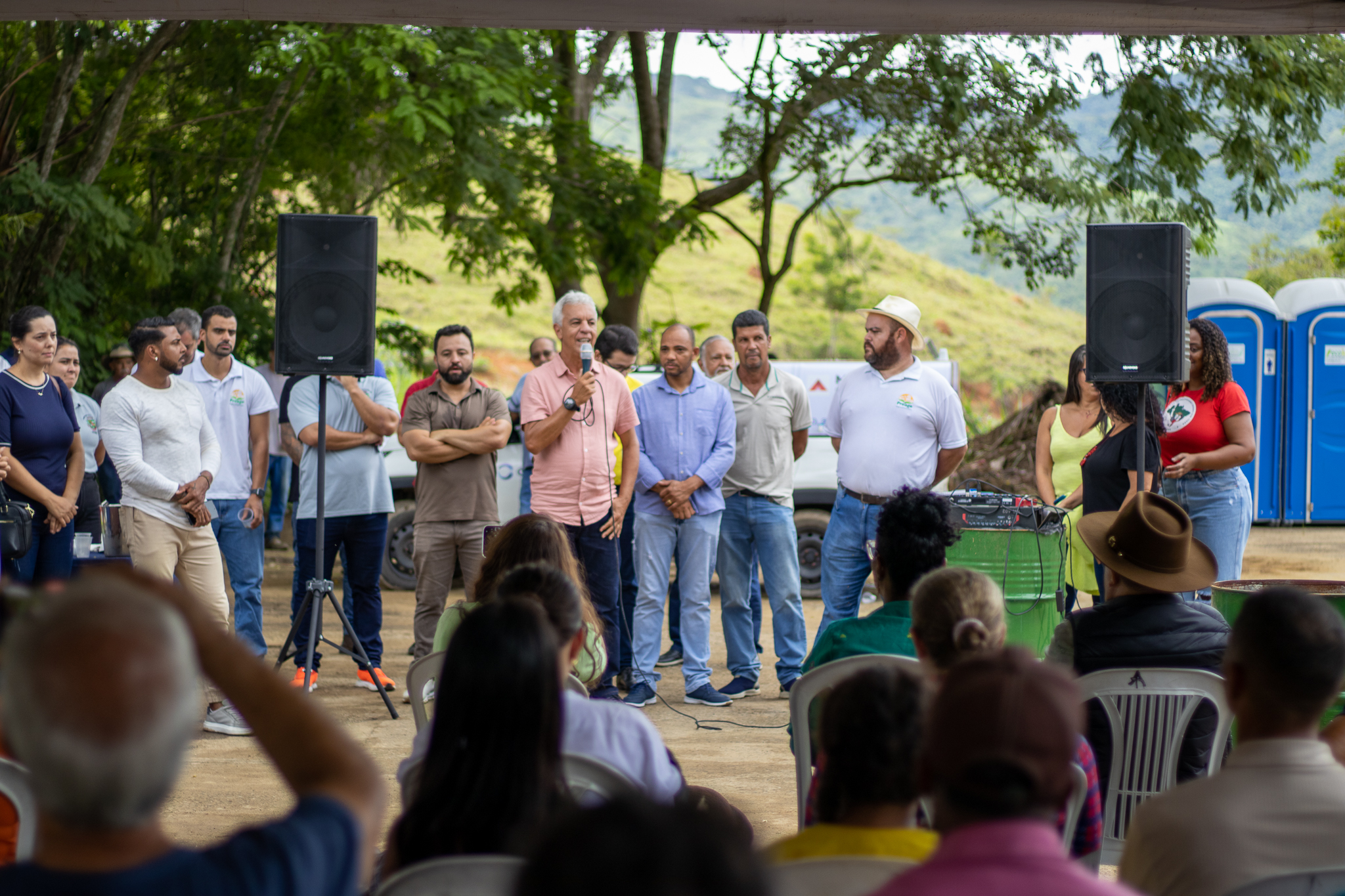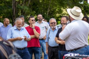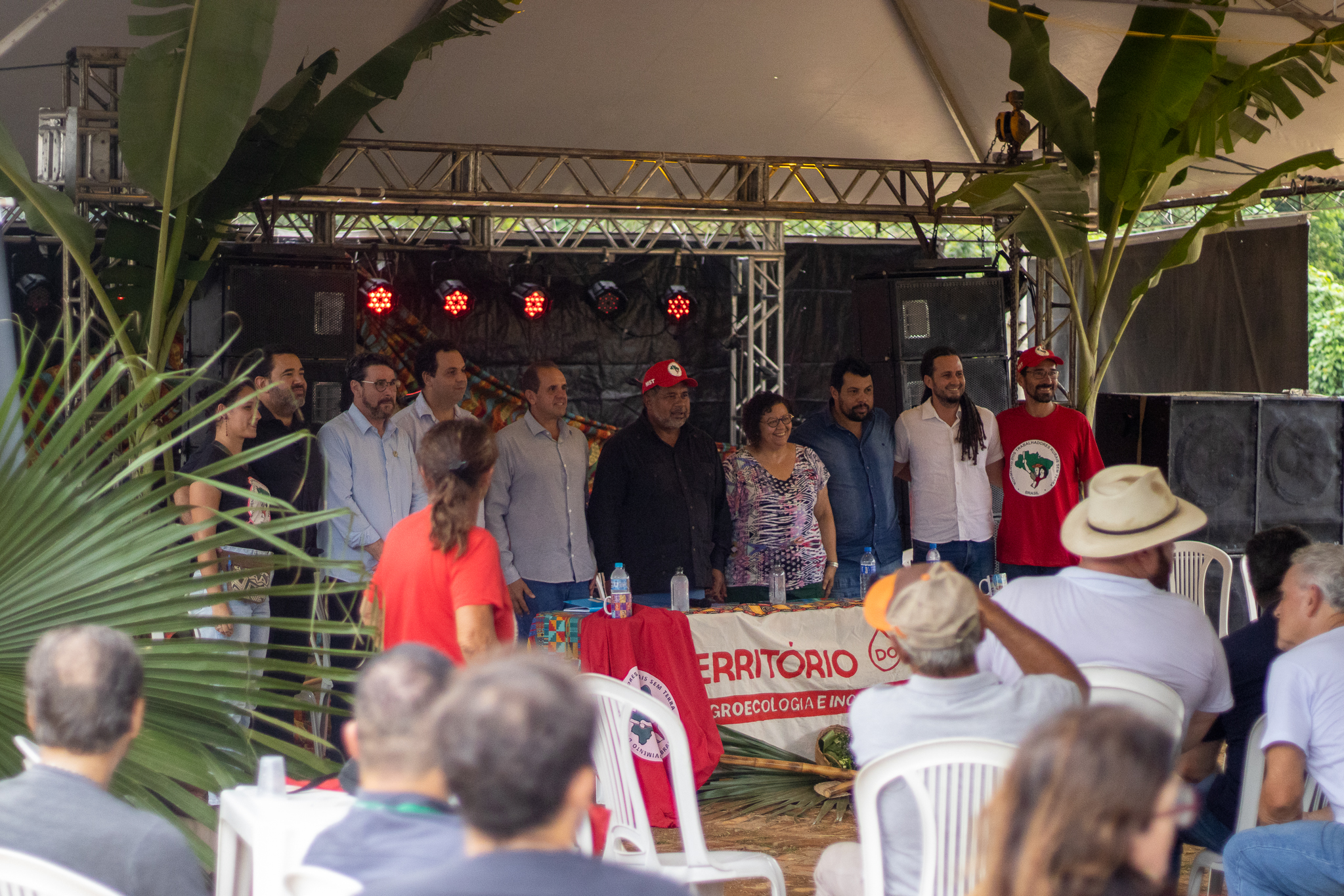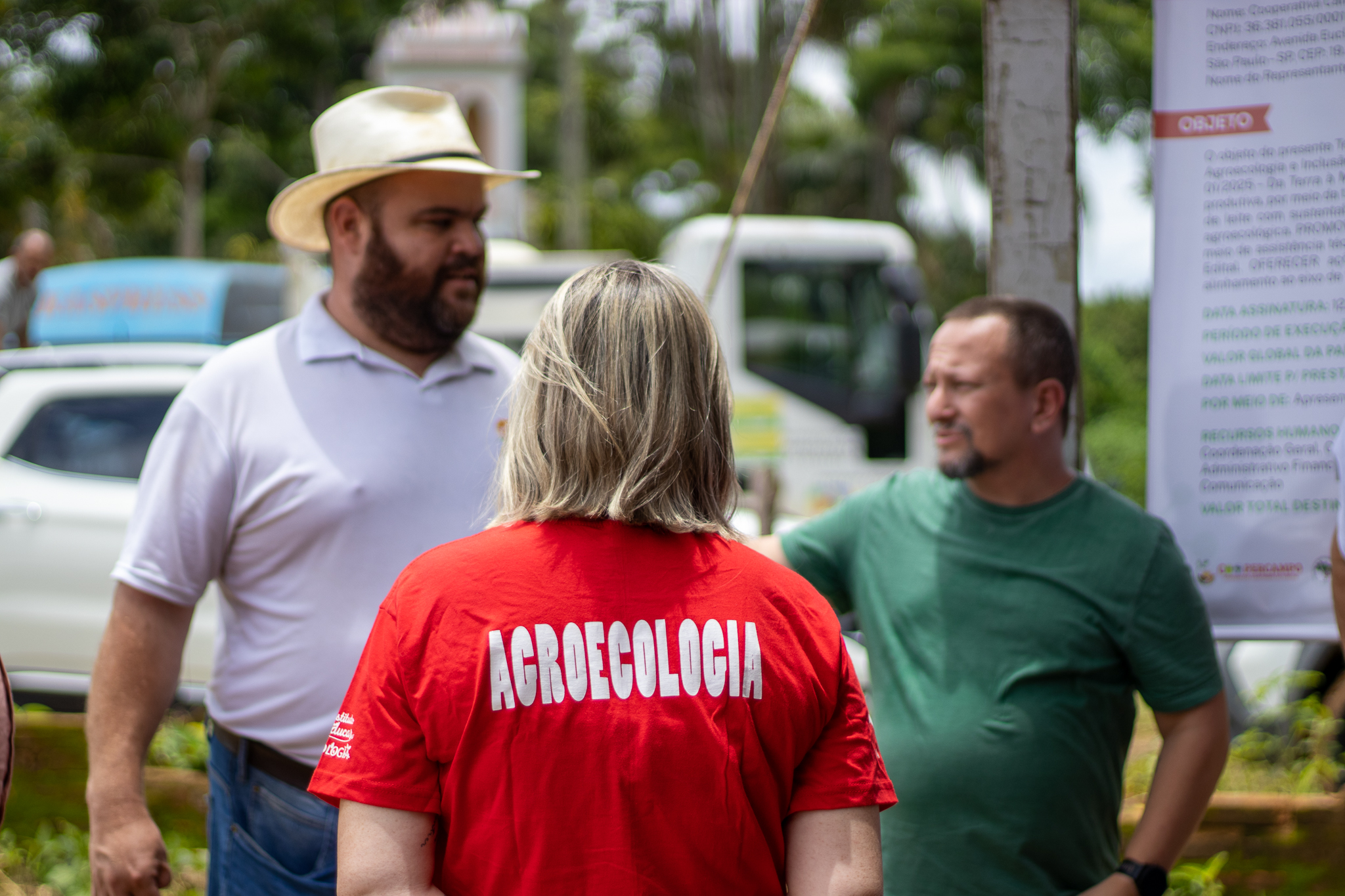 Na sequência da agenda, a comitiva seguiu para o Assentamento Denis Gonçalves, onde foram lançados os projetos Terra à Mesa e Transferência de Embriões, ampliando as iniciativas de incentivo à produção, à inovação e ao desenvolvimento rural.