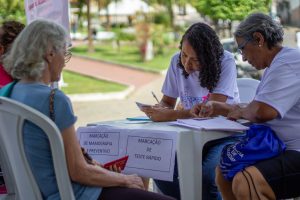 Após a corrida e caminhada, diversas ações de saúde foram realizadas na praça. A população pôde participar de atividades como orientações sobre a saúde da mulher, pesagem do Bolsa Família, solicitação de mamografia, agendamento de testes rápidos e de exame preventivo, além de orientações sobre saúde bucal e combate à dengue.