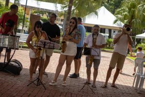 A programação contou ainda com um aulão de ginástica em ritmo carnavalesco, conduzido pelo professor de dança Paulão, que incentivou a prática de atividades físicas de forma leve e animada. Para completar o ambiente festivo, a Banda América Tropical participou com marchinhas de carnaval, garantindo a animação do público presente.